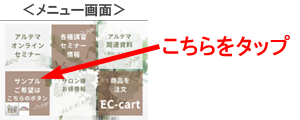 友だち追加して頂いたアルテワールドOfficialのトーク画面を開いて頂き、画面下に表示されるメニューの『サンプルご希望はこちらのボタン』をタップして頂きます。