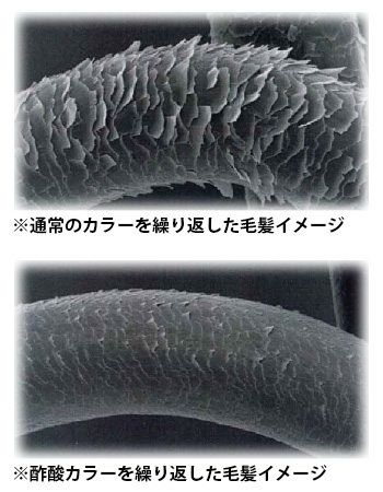 『酢酸』の力でアルカリ除去+キューティクルクローズ