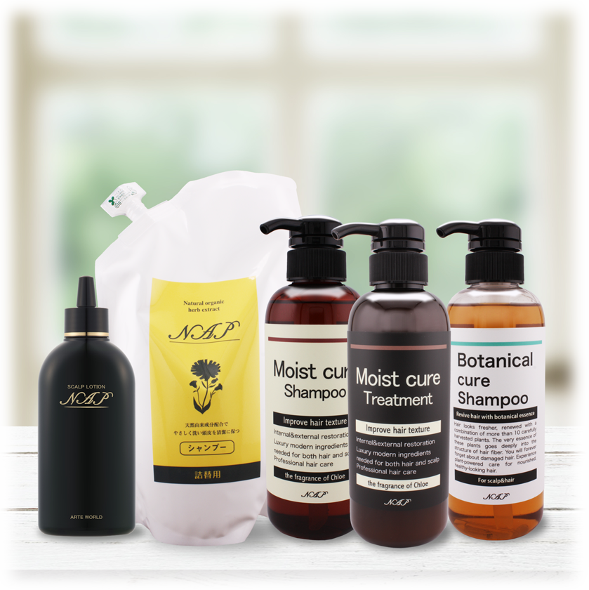 NAPシャンプーは頭皮にダメージを残さないアミノ酸系洗浄成分であるココイルグルタミン酸TEA、その他植物由来成分など、洗浄成分と配合量にこだわったシャンプーです。サロン専売品として開発されたNAPシャンプーは、1日に数十人のシャンプーをする美容室のスタッフの皆様から、NAPシャンプーに替えてから「手荒れがしなくなった」等の喜びのお声も頂いております。