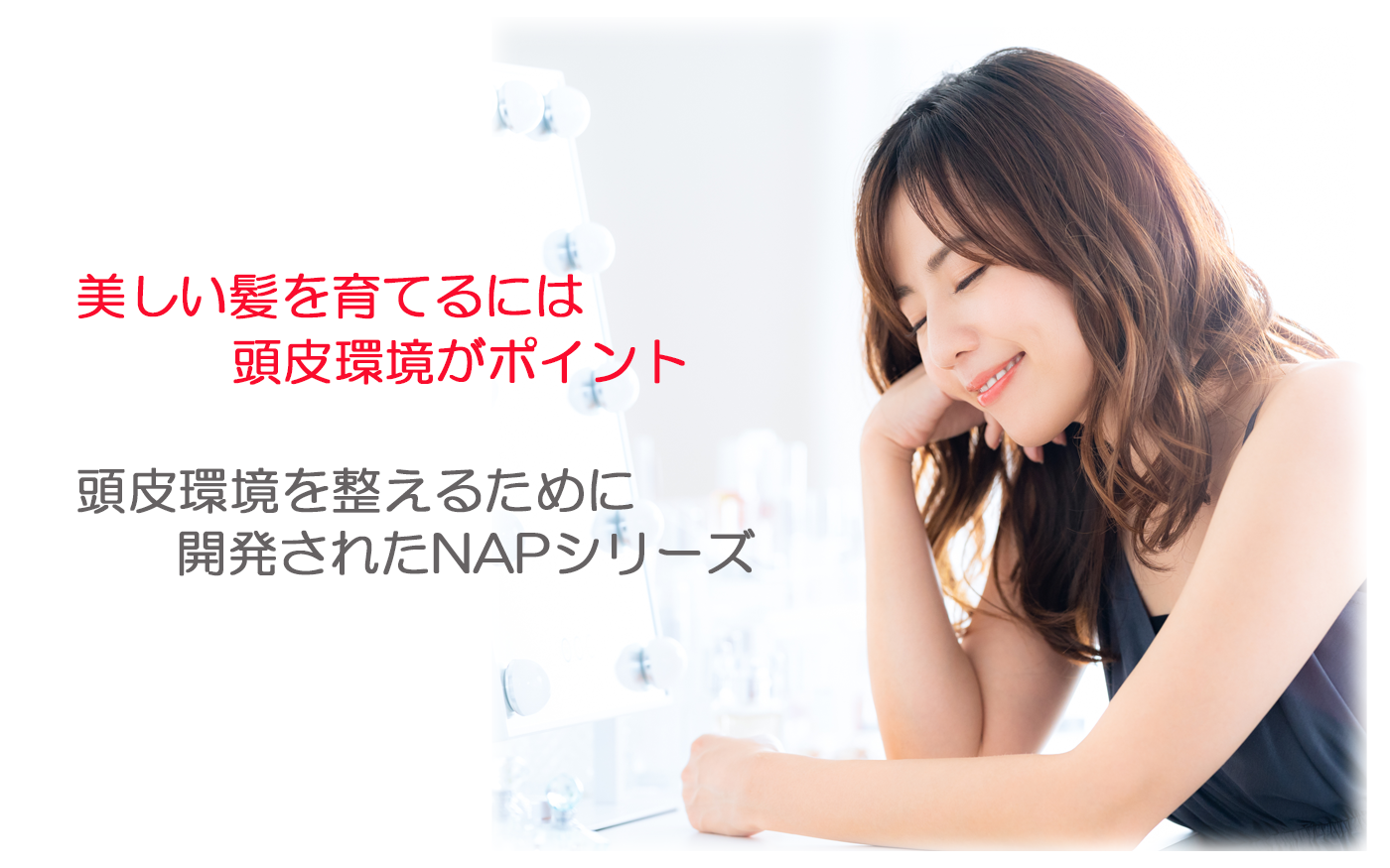 NAPシャンプーは、“あえて”泡立ちを抑えるように作られています。もこもこの泡で洗浄すると、過剰に皮脂を洗い流してしまい、皮脂の過剰分泌や炎症、フケ・痒みを引き起こし、かえって髪や頭皮の環境を悪化させてしまいます。「健康な頭皮」「美しい髪」のために、汚れのみを落とす優しい泡立ちで、髪や頭皮をいたわりながら洗浄します。NAPヘア&スカルプケアシリーズは、これまでのシャンプーの常識に挑戦する新しい発想で健康な頭皮と美しい髪へと甦生させます。