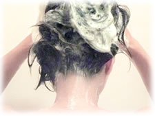 ・優しい洗浄成分のシャンプーで頭皮を洗う